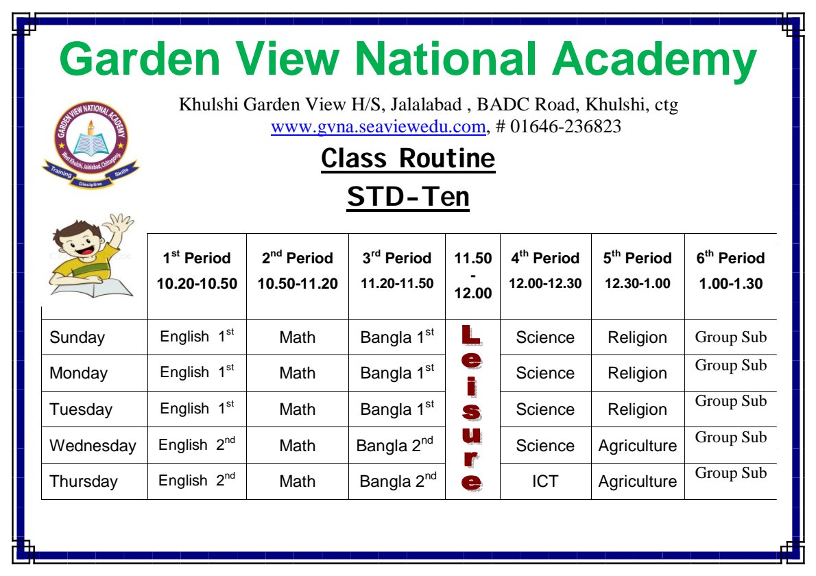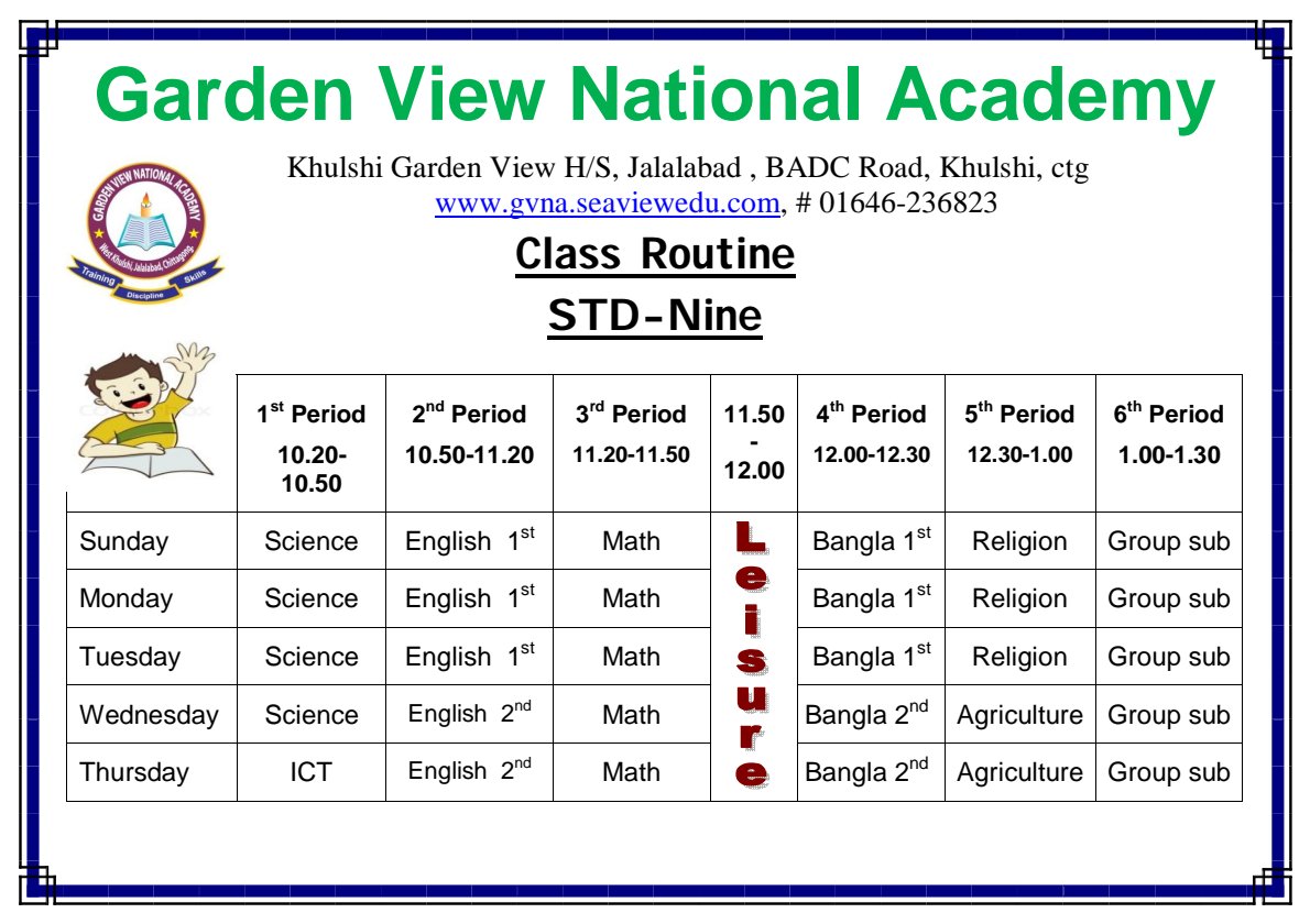 ভর্তি চলছে– স্ট্যান্ডার্ড প্লে থেকে দ্বাদশ শ্রেণি (বিজ্ঞান, মানবিক ও ব্যবসায় শিক্ষা বিভাগ) এবং ভোকেশনাল (কম্পিউটার ট্রেড) এ ভর্তি চলছে - 01646236823, 01843118751.
